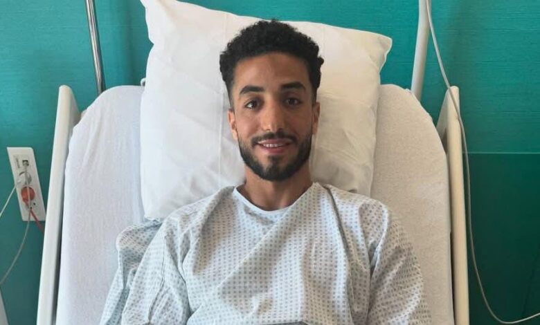 من جانبه، نشر الإعلامي أحمد شوبير صورة للاعب بعد خضوعه لجراحة الرباط الصليبي، عبر صفحته على “فيسبوك”، وعلق قائلاً: “محمد عبد المنعم بعد إجراء عملية تمزق الرباط الصليبي”.