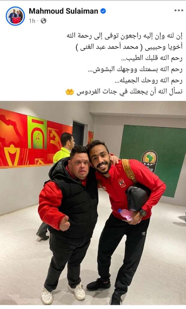 حرص محمود عبدالمنعم كهربا، لاعب الاتحاد الليبي الحالي والنادي الأهلي سابقًا، على نعي مشجع الأهلي الشهير محمد أحمد عبد الغني، المعروف بـ “أمح الدولي”، الذي وافته المنية صباح اليوم الاثنين.