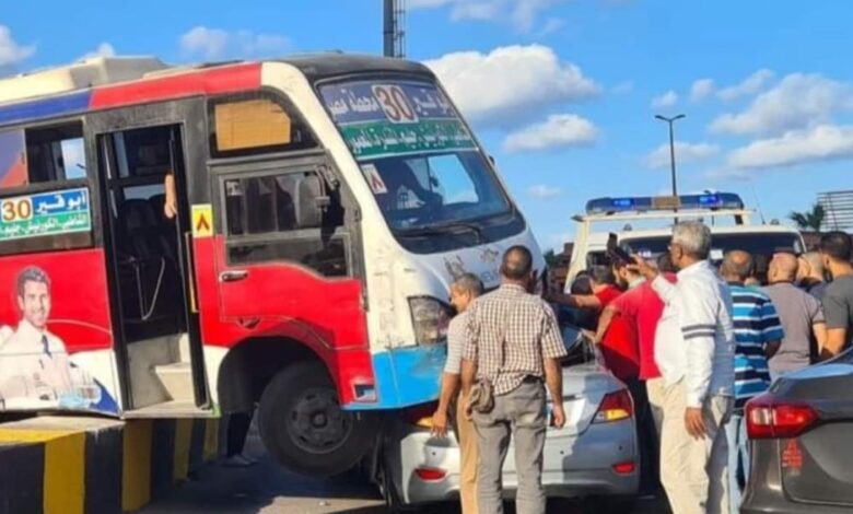 وانحراف أتوبيس نقل عام عن مساره، في أثناء سيره على كورنيش منطقة جليم بالإسكندرية، وتخطى الرصيف الفاصل بين الاتجاهين، ودهس سيارة ملاكي.