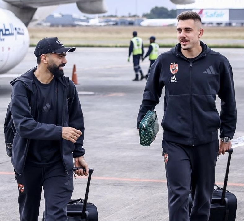 ووصلت البعثة الى مطار جوهانسبرج بعد رحلة طيران طويلة على متن طائرة خاصة، تخللها الهبوط في العاصمة الكينية نيروبي للتزود بالوقود، قبل أن تتوجه إلى مدينة بريتوريا التي تستضيف المباراة.