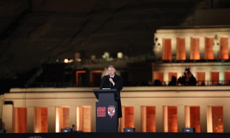 جاء ذلك خلال الحفل الذي شهد الكشف عن تصميم استاد الأهلي الجديد، والذي أُقيم في معبد حتشبسوت بمدينة الأقصر.