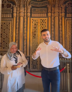 كما ظهر في الفيديو أن استمع الشيف بوراك لشرح عن مسجد محمد علي بالقلعة، من إحدى المرشدات السياحيات، وبعدها التقط صورًا مع محبيه.