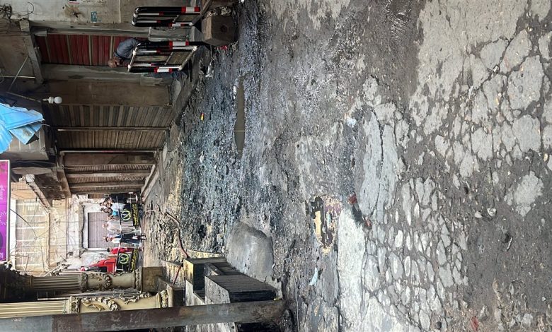 اندلاع حريق هائل داخل سوق الخواجات بالمنصورة ولجنة العمل تتحرك لمعاينة الأسباب