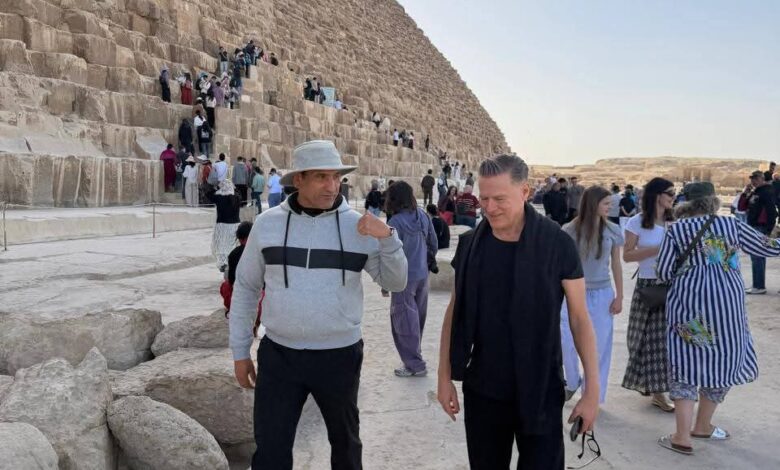 براين آدمز يزور أهرامات الجيزة بعد حفله في المتحف المصري الكبير