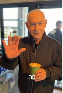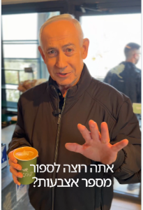وظهر نتنياهو خلال المقطع وهو يحتسي القهوة، كما تعمد إظهار يديه أمام الكاميرا مشيرًا إلى أصابعه الخمسة في كل يد، للرد بطريقة غير مباشرة على مقطع متداول زعم بعض المستخدمين أنه يظهر فيه بستة أصابع في كل يد.