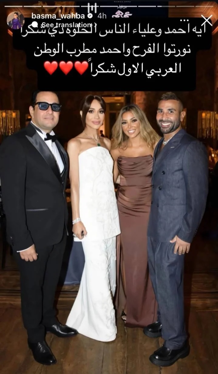 ونشرت بسمة وهبة على خاصية القصص المصورة على حسابها الخاص بـ “إنستجرام”، مجموعة صور ظهر فيها سعد وعلياء، وأعربت عن سعادتها البالغة بزفاف نجلها.