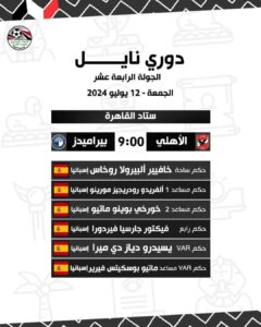 كلفت لجنة الحكام في الاتحاد المصري لكرة القدم  مباراة الأهلي وبيراميدز إلى الحكم الإسباني خافيير ألبيرولا روخاس، في الجولة الرابعة عشر والمؤجلة من بطولة الدوري المصري.