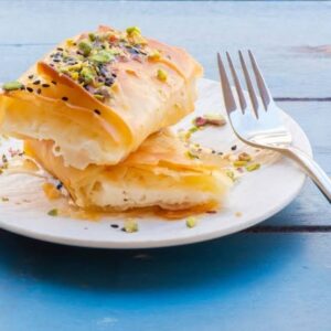 • غطي الحشوة بباقي أوراق الجلاش، مع دهن كل طبقة بالقليل من الزبدة.