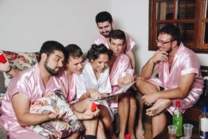 دعت برانتس المصور “فرناندو دوكي”، لالتقاط سلسلة من الصور التقليدية التي تُظهر كواليس حفلة العروس، ولكن مع اختلاف طريف؛ حيث قام خمسة من أصدقائها الذكور بدور صديقاتها في هذه الصور.