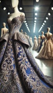 صممت الفستان المصممة البريطانية الشهيرة “لورن سكوت”، وتم تقدير سعره بحوالي 15 مليون دولار، وتم ظهوره لأول مرة في عام 2013، ويحتوي على مجموعة من الأحجار الكريمة، بما في ذلك الماس واللؤلؤ، وهو مصنوع من الحرير الفاخر.
