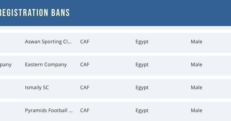 يصبح عدد الأندية المصرية الموقوفة من القيد 5 وفقا للاتحاد الدولي لكرة القدم