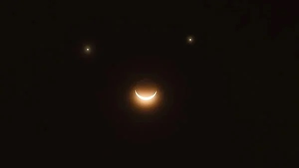 وبحسب ما أعلنته وكالة الفضاء الأمريكية “ناسا”، فإن هذه الظاهرة تحدث عندما يقترب القمر في طور الهلال الرقيق من كوكبي الزهرة وزحل، ليظهر المشهد وكأن السماء ترسم ابتسامة مشرقة، تزينها عينان متألقتان هما الزهرة وزحل.