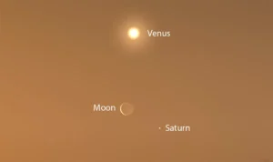 وبحسب ما أعلنته وكالة الفضاء الأمريكية “ناسا”، فإن هذه الظاهرة تحدث عندما يقترب القمر في طور الهلال الرقيق من كوكبي الزهرة وزحل، ليظهر المشهد وكأن السماء ترسم ابتسامة مشرقة، تزينها عينان متألقتان هما الزهرة وزحل.