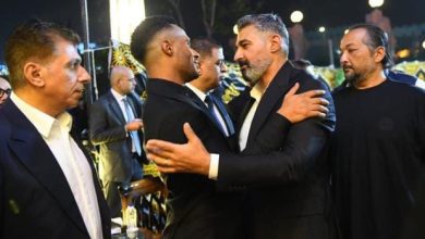 محمد سعد ودرة وحسن الرداد وعصام السقا يقدمون العزاء في والد محمد رمضان بمسجد الشرطة بالشيخ زايد