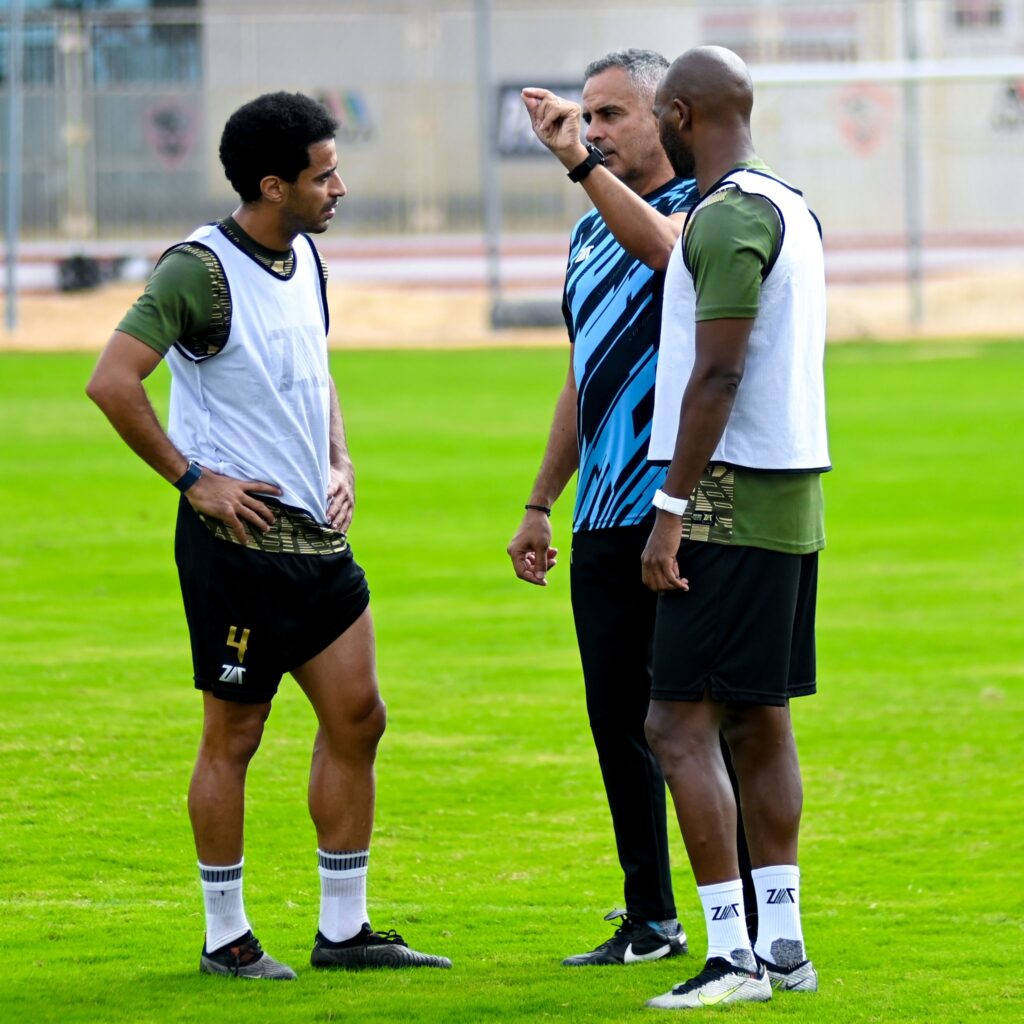 عقد المدير الفني البرتغالي جوزيه جوميز اجتماعًا مع معاونيه خلال المران لمناقشة استعدادات الفريق ومراجعة التقارير الفنية للاعبين.