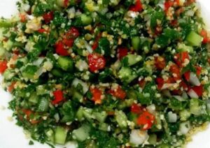 التبولة هي سلطة تقليدية في بلاد الشام، وتحتوي على البقدونس المفروم، البرغل، الطماطم، والبصل، تتميز التبولة بكونها غنية بالألياف، الفيتامينات، والحديد، كما أن البقدونس يعد مصدرًا ممتازًا لمضادات الأكسدة ويساهم في تحسين صحة الكلى.