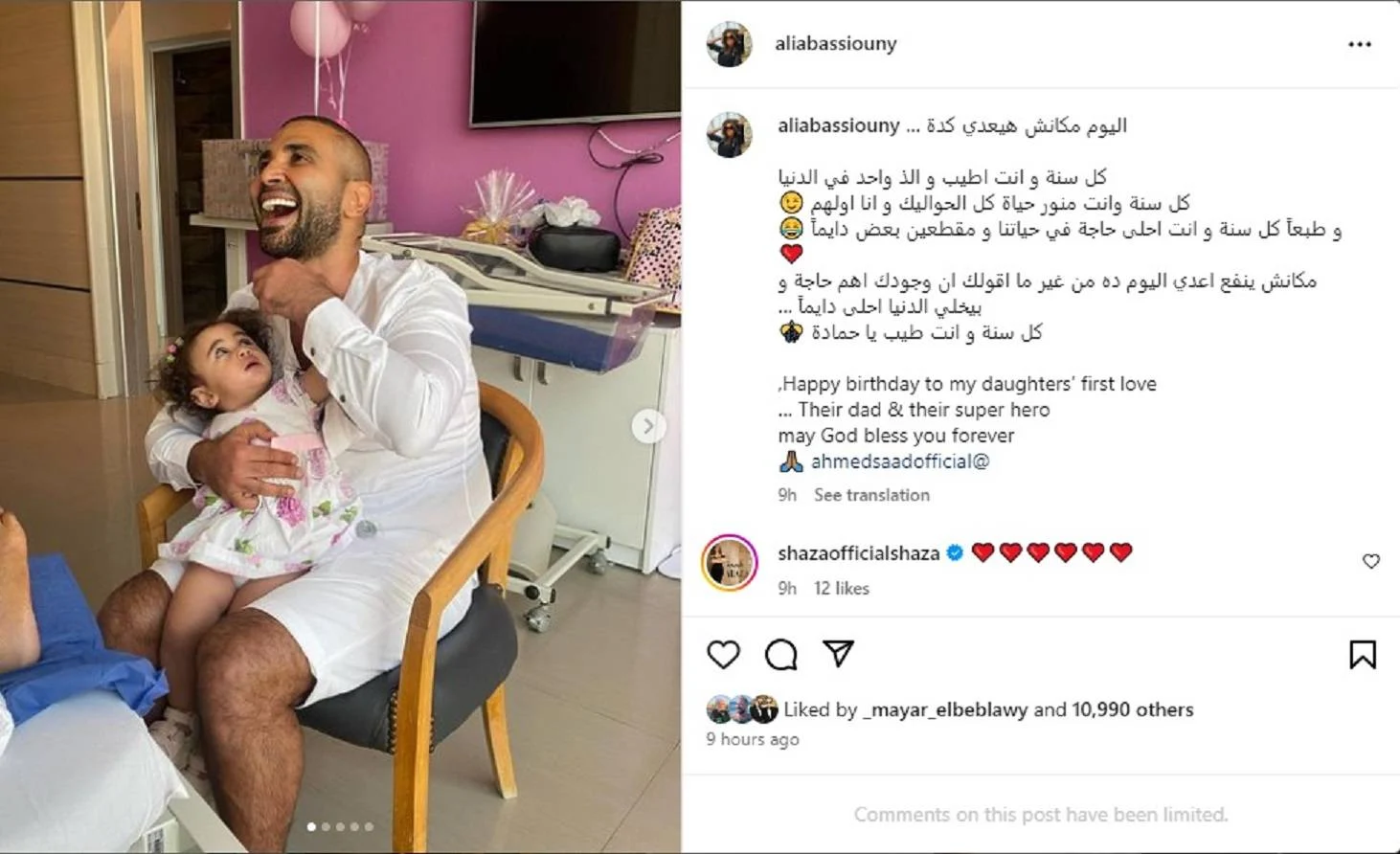 وقالت علياء بسيوني تعليقًا على الفيديو والصور، التي نشرتها عبر حسابها الرسمي في “إنستجرام”: “اليوم مكنش هيعدّي كده… كل سنة وأنت طيب وألذ واحد في الدنيا، كل سنة وأنت منوّر حياة كل اللي حواليك وأنا أولهم وطبعًا”.