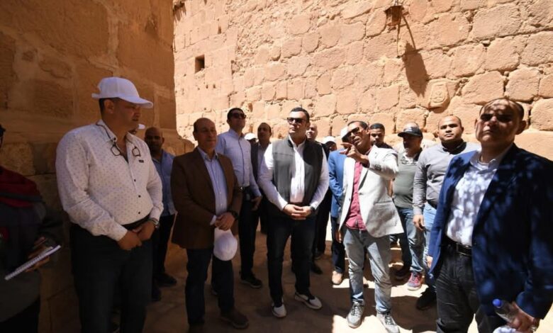 واستمع الوزير خلال جولته لشرح تفصيلي عن تاريخ الدير ورمزيته الدينية، حيث يضم معالم دينية نادرة مثل شجرة العليقة وكنيسة التجلي، إلى جانب الجامع الفاطمي الذي يقف بمئذنته بجوار برج أجراس الكنيسة، في مشهد يعكس وحدة الأديان على أرض سيناء.