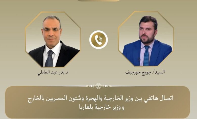أجرى الدكتور بدر عبد العاطي، وزير الخارجية والهجرة، اتصالًا هاتفيًا مع نظيره البلغاري جورج جورجيف، يوم 18 فبراير، لبحث سبل تعزيز العلاقات الثنائية بين البلدين، خاصةً في مجالات الاقتصاد والتجارة والاستثمار.