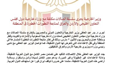 كما شدد وزير الخارجية على أهمية احترام سيادة الدول ومبادئ حسن الجوار، والتحلي بأقصى درجات ضبط النفس خلال هذه المرحلة الدقيقة، معربا عن أهمية تكثيف الجهود الإقليمية والدولية لاحتواء التصعيد ومنع اتساع دائرة الصراع.