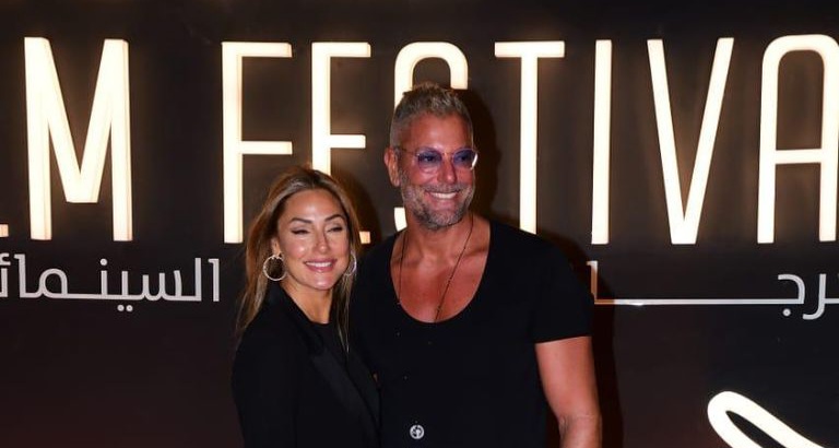 وارتدى “هجرس” بنطالًا ورديًا مع قميص أسود، بينما تألقت زوجته ميرال بشورت منقوش وقميص باللون ذاته، ليظهرا كثنائي متناسق على السجادة الحمراء.