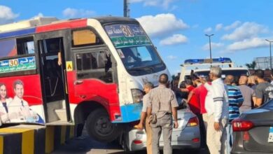 إصابة 5 أشخاص| أتوبيس يدهس سيارة ملاكي على كورنيش الإسكندرية